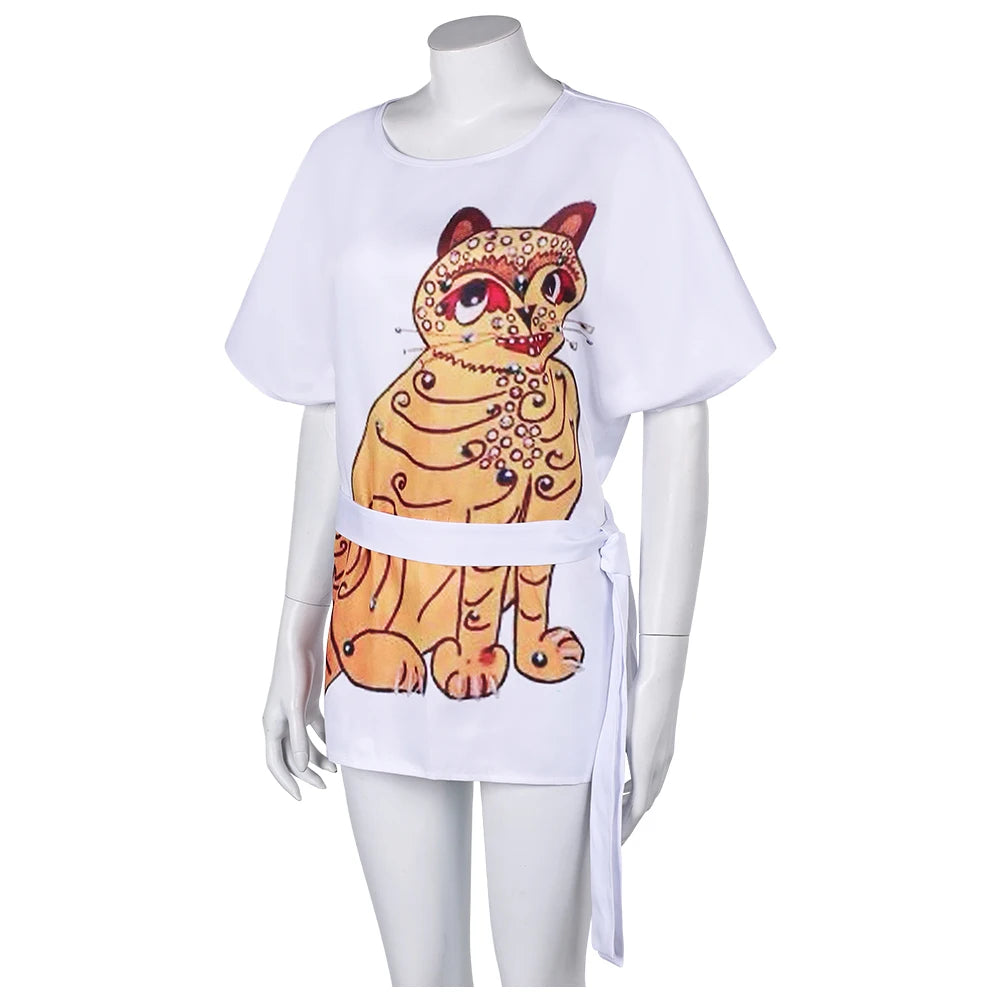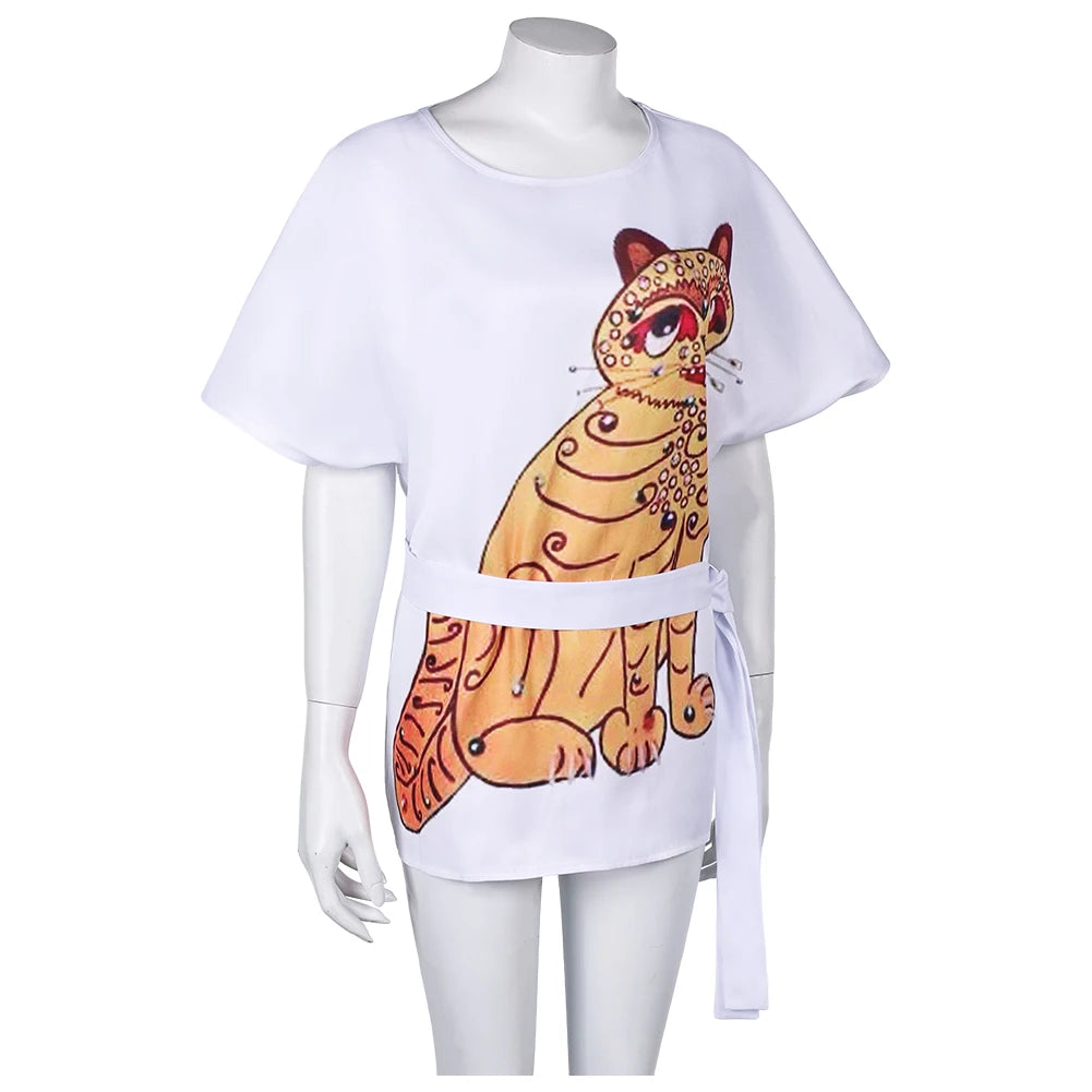 This stylish costume includes a vintage T-shirt dress adorned with a unique and artistic cat design, adding a touch of playful elegance to your look. The costume comes with a matching belt to cinch the waist, ensuring a flattering fit. The soft, comfortable fabric makes it easy to wear for extended periods, allowing you to dance and enjoy your event without any discomfort.