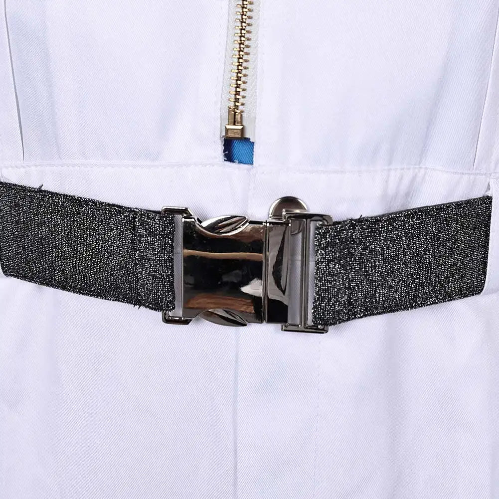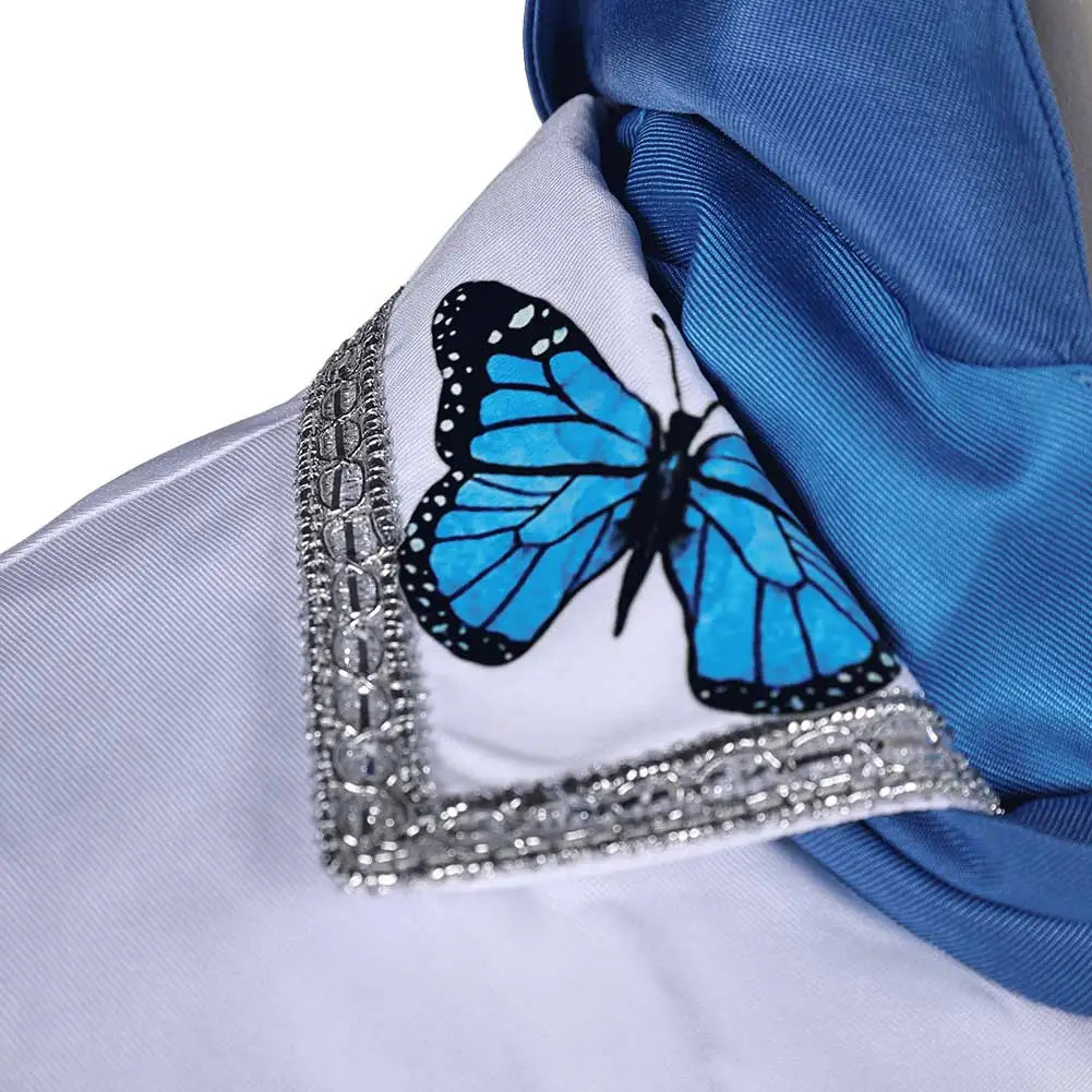 This unique costume includes a vintage shirt with vibrant blue sleeves, a stylish scarf, and matching white bell-bottom pants. The jumpsuit's soft and comfortable fabric ensures you can dance and enjoy your event without any discomfort. The detailed design and high-quality materials make this costume stand out, ensuring you turn heads wherever you go.