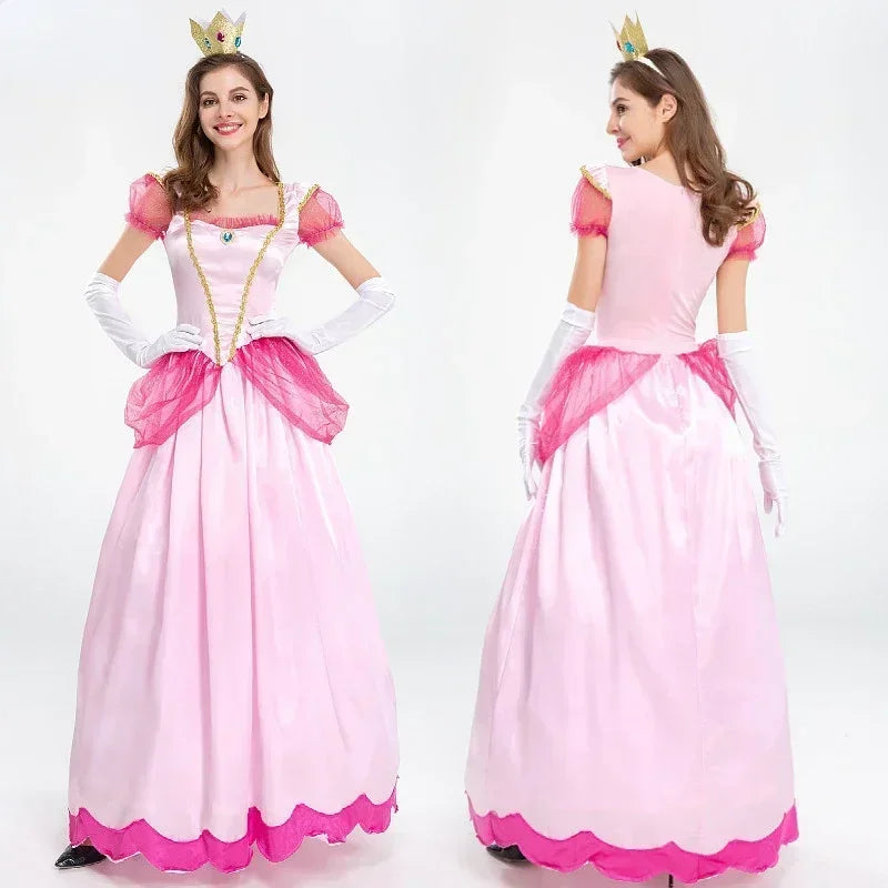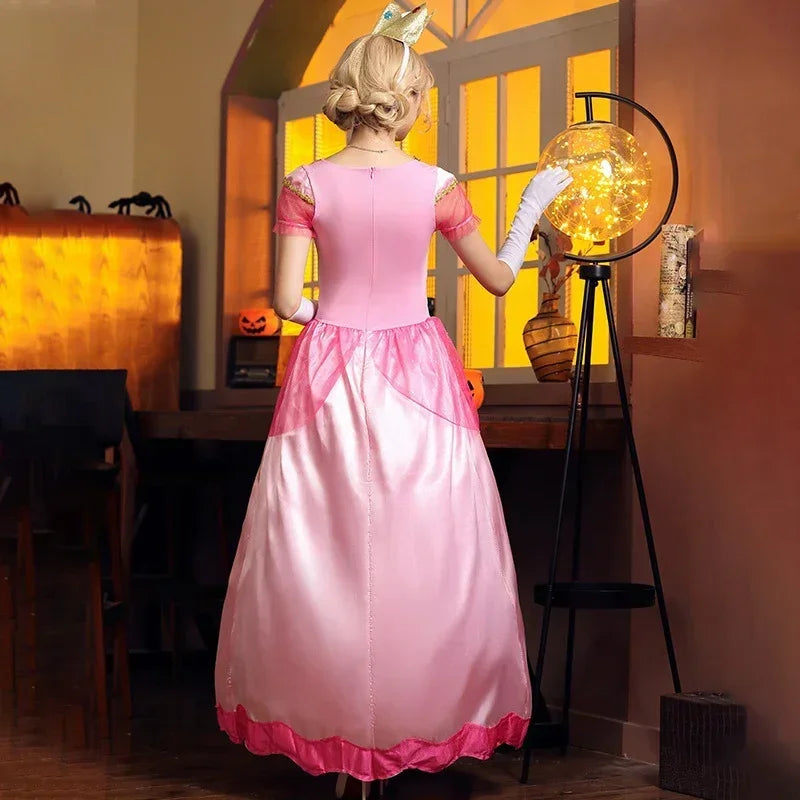 Adult Princess Peach Costume – Elegant Pink Cosplay Dress