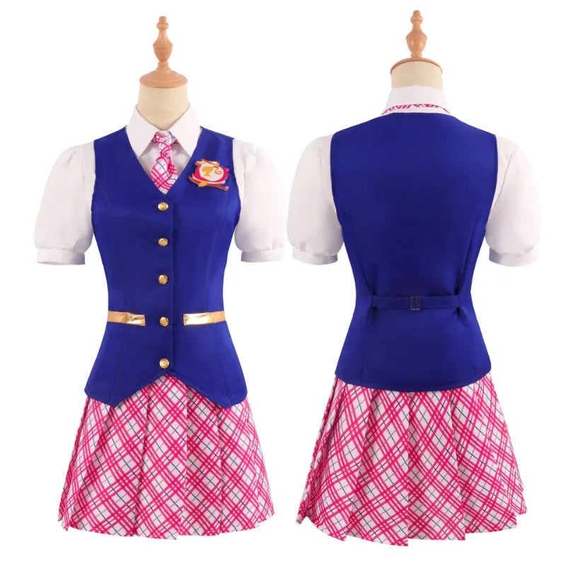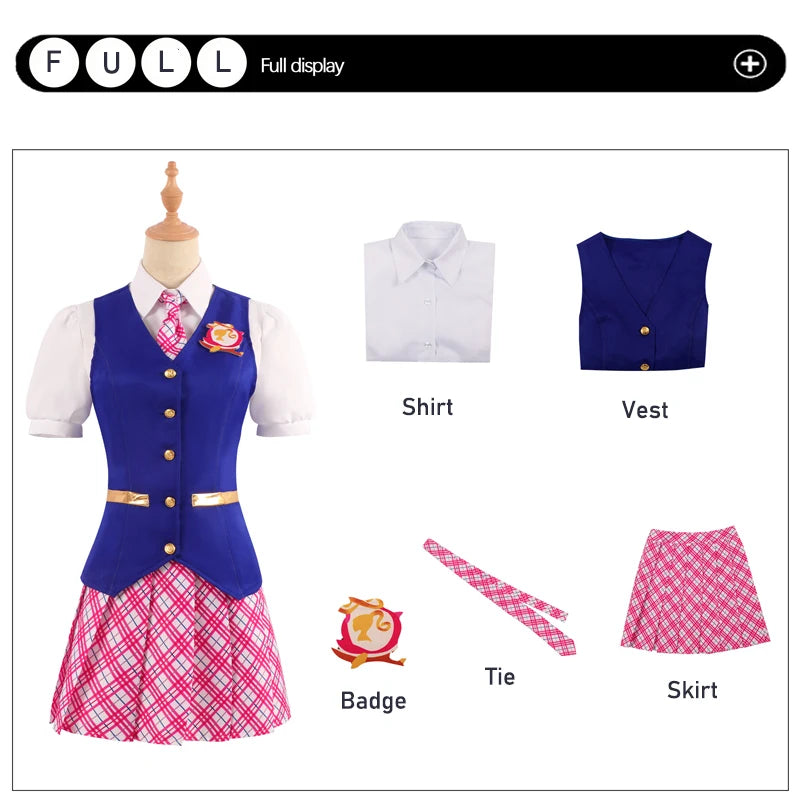 This stunning Barbie movie cosplay costume perfectly captures the essence of the iconic princess look. Designed with a detailed school uniform style, it includes a beautiful top and skirt, ideal for those who want to embrace the charm and elegance of Barbie. Whether you're attending a Halloween party or getting ready for a cosplay event, this outfit is a showstopper that will make you feel like the star of the movie.
