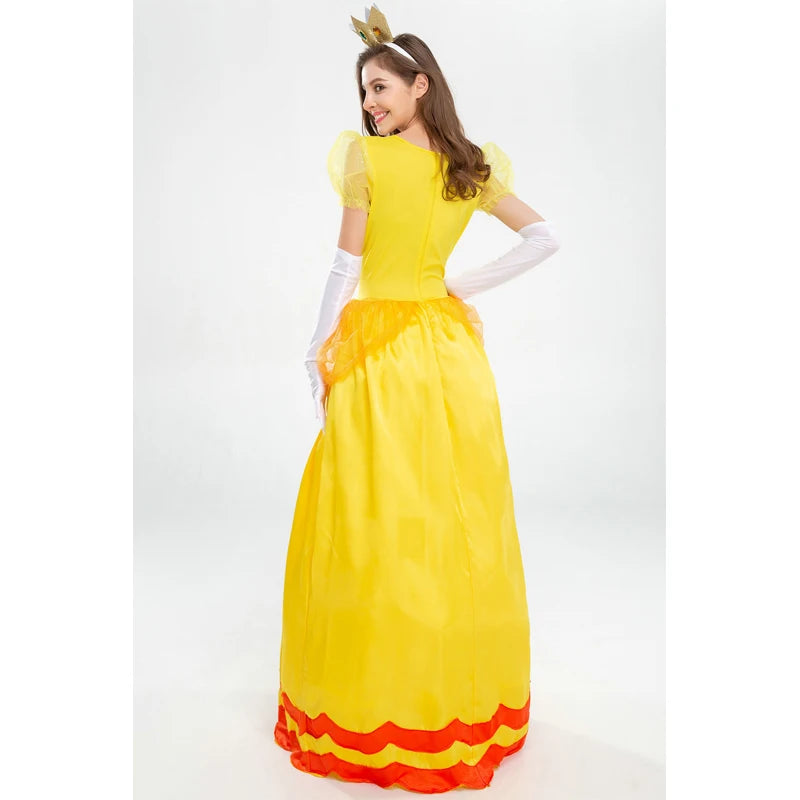 This Princess Peach gown is ideal for Halloween, cosplay conventions, themed birthday parties, or even couples’ costumes with Mario, Luigi, or Bowser.